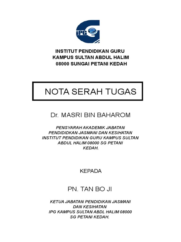 Nota Serah Tugas Indira Doc Nota Serah Tugas Nama Komala A P Doraisamy Jawatan Gred Ppp Dg 42 Kandungan Bil Perkara 1 Surat Penyerahan Dan Akuan Course Hero from www.coursehero.com Nota serah tugas kernai kewangan. Maybe you would like to learn more about one of these? We did not find results for: Check spelling or type a new query.